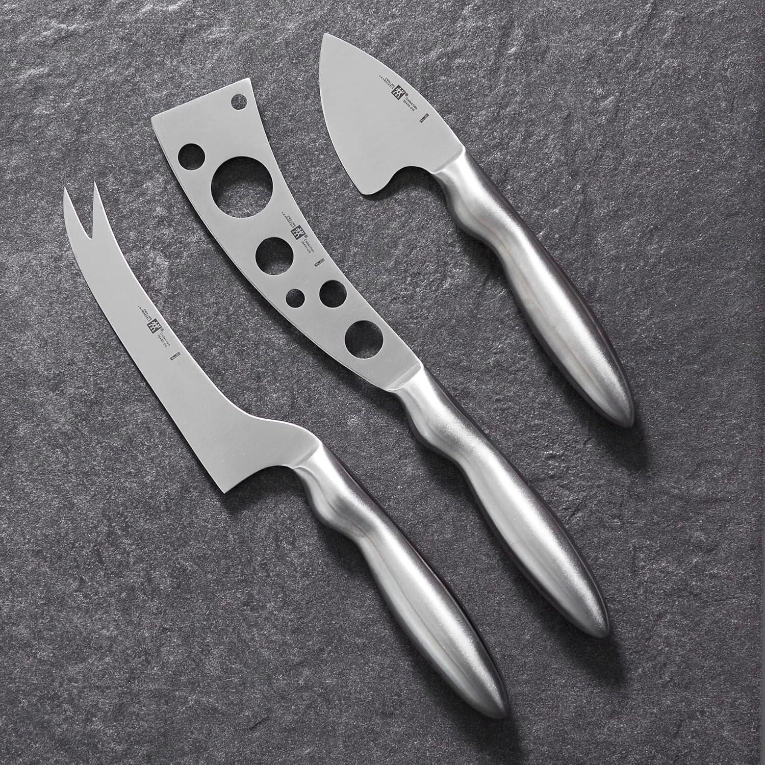 Set of 3 cheese knives accommodates multiple types of cheese.-Inch knife with forked tip and 5-1/2-inch perforated knife for semi-hard cheeses. Made of high-quality stainless steel for long-lasting beauty and performance.