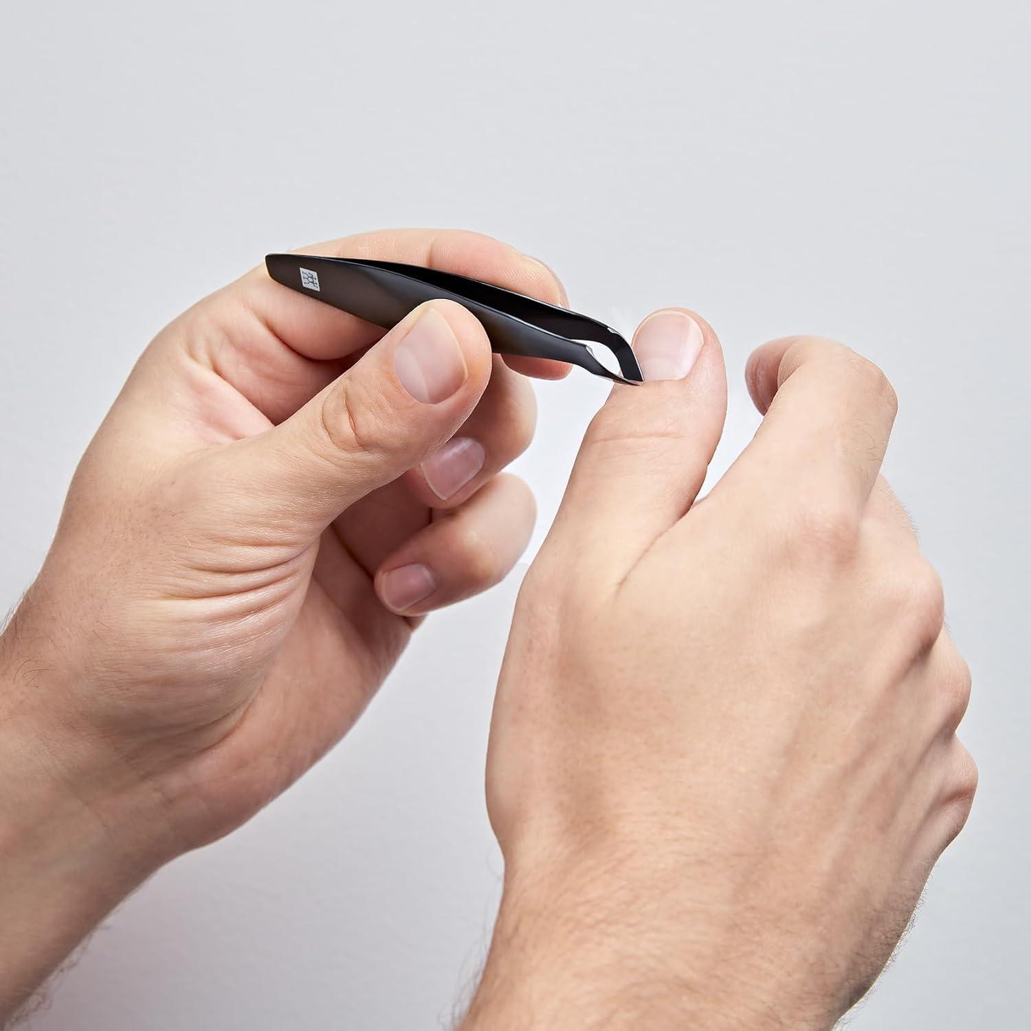 These Premium cuticle nippers in black are ideal for removing cuticles and annoying scraps of skin. Based on the functionality of tweezers, the cuticle nippers are easy to handle. Annoying scraps of skin, especially directly at the nail fold, can be removed without tearing or pulling the skin. Sharp, angled cutting blades ensure a particularly precise result. The production from high-quality, stainless steel guarantees hygienic cleaning, maximum scratch resistance as well as a long service life. The perfect ergonomic shape ensures perfect user comfort and an attractive, high-quality design.