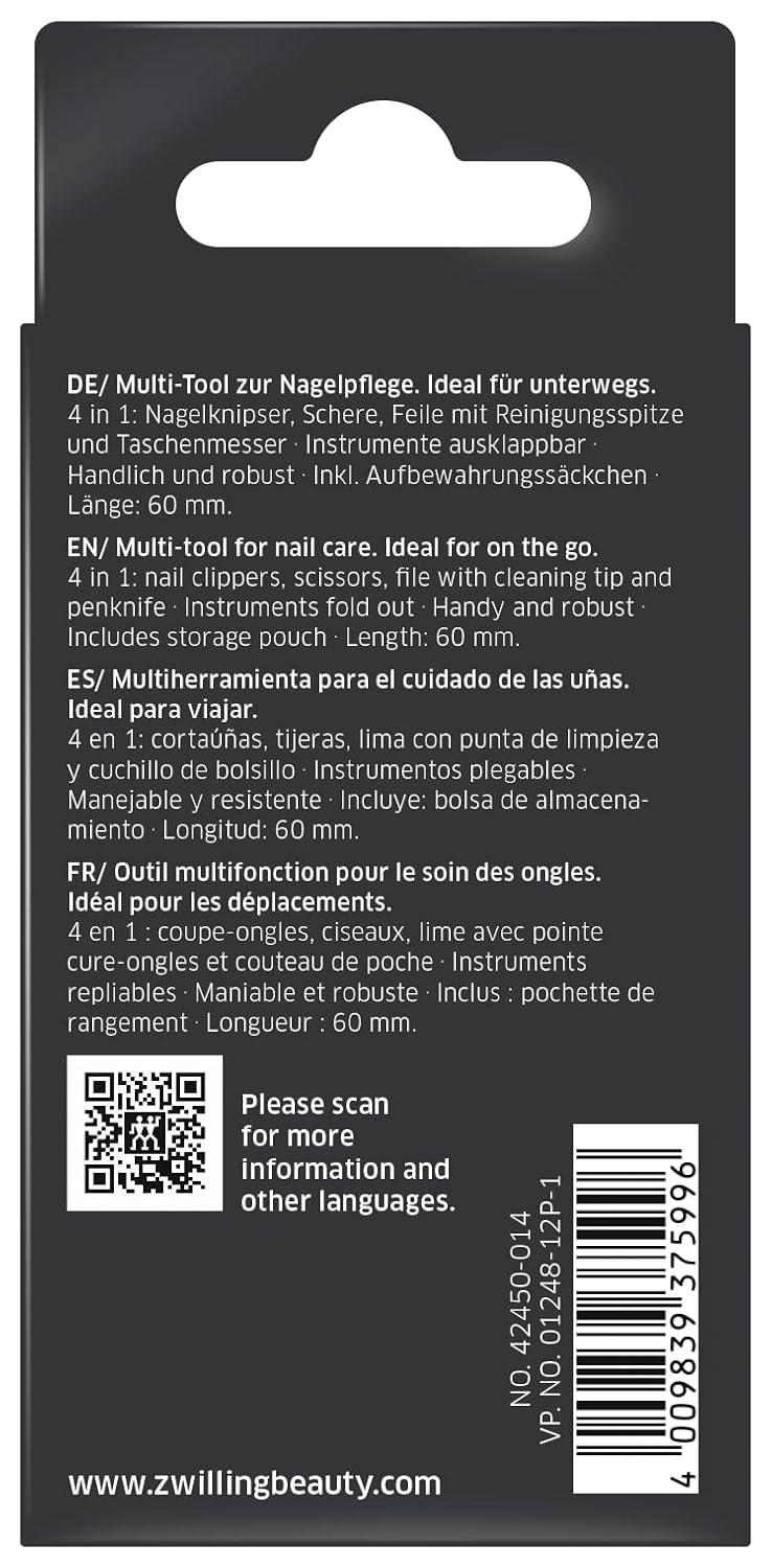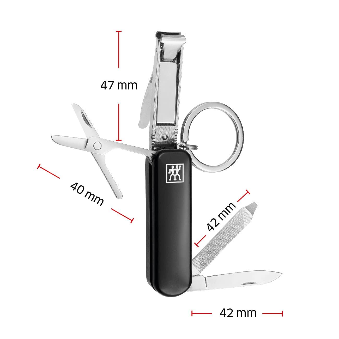 This multi-tool combines four product in one: a pair of nail clippers, nail file with a cleaning tip, a pocket knife and scissors to create the ideal tool for repairing minor nail damage while you’re out and about. Thanks to its built-in key fob, the multi-tool can be taken almost anywhere to be always on hand. Made with polished stainless steel, it is especially robust, durable and resistant to even high humidity. Available in red, silver and black.