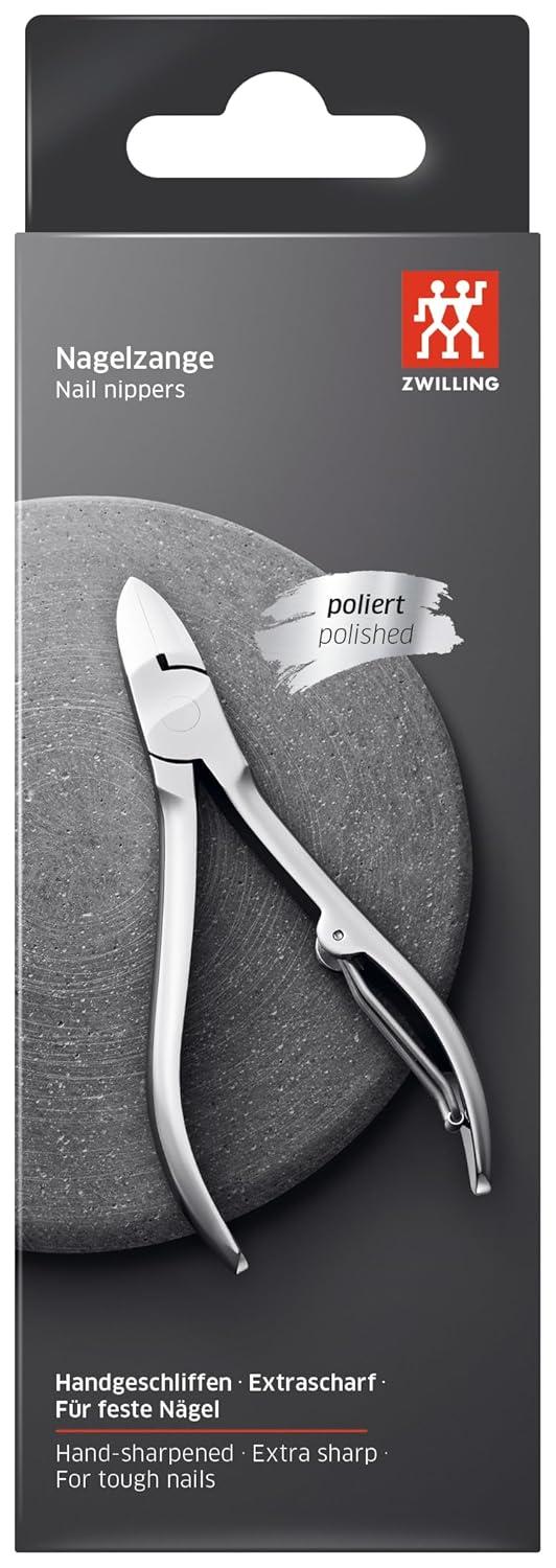 These nail nippers feature sharp cutting edges to cut hard fingernails and toenails cleanly and easily. The high-quality workmanship of the polished stainless steel complements the attractive, valuable design of these nail nippers and ensures their excellent functionality and long life.
