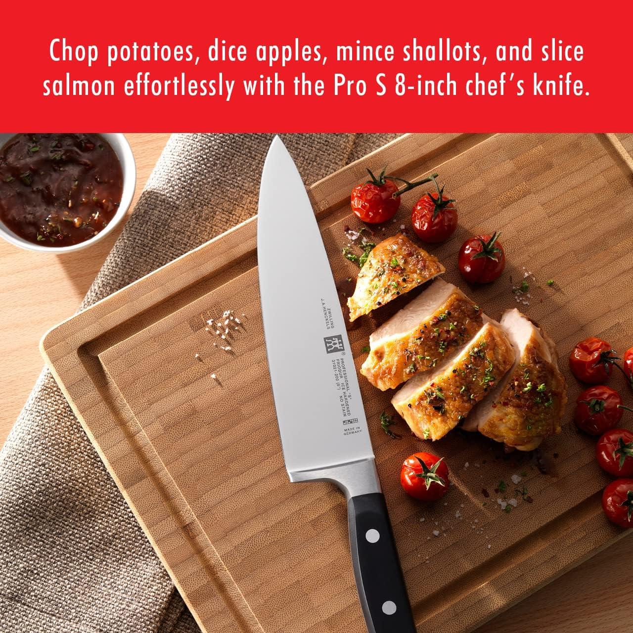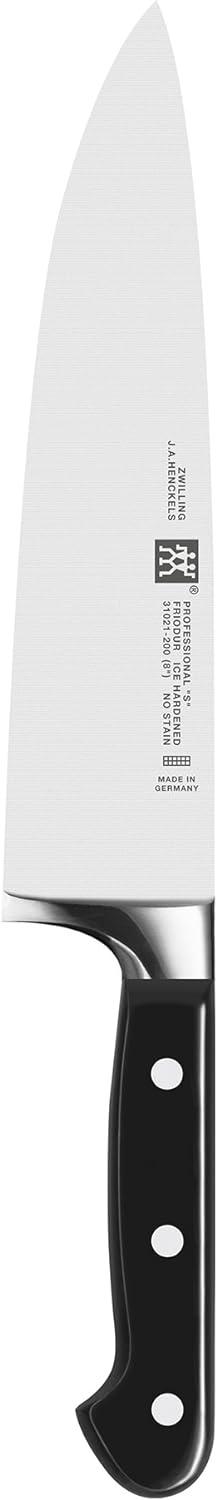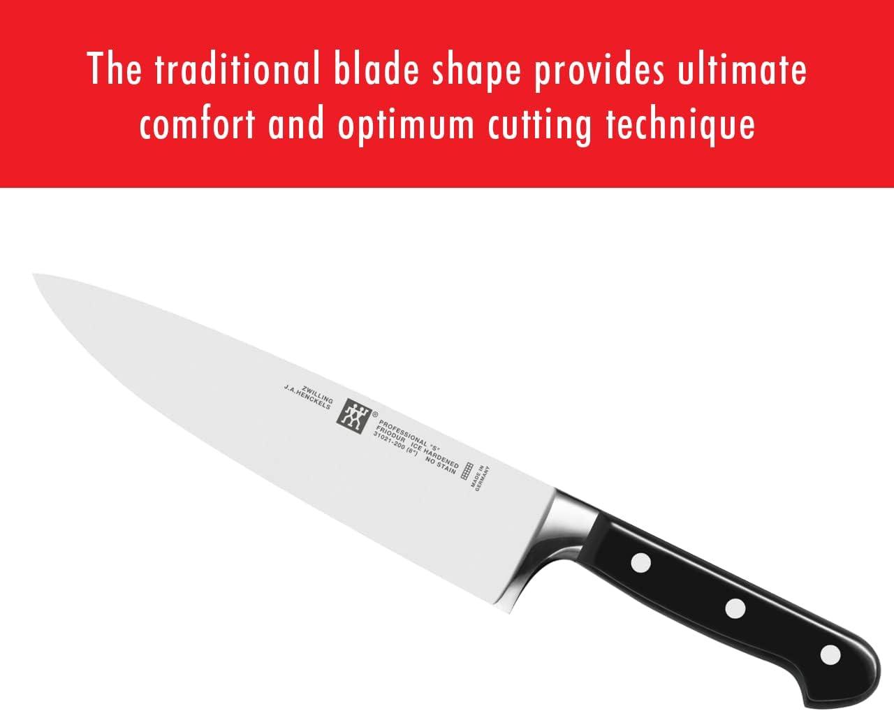 PROFESSIONAL “S” are the classic knives for the professional kitchen. The knives are made of proprietary special formula steel that has been perfected for over 280 years. Combined with ZWILLING's signature ice-hardening technique, these FRIODUR blades are harder, sharper, they will NOT STAIN or chip and they retain their sharpness longer.